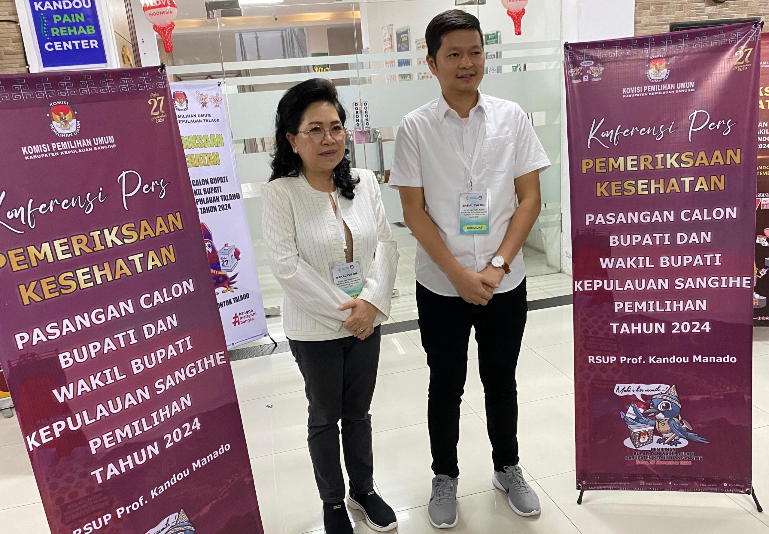 Manadoline.com, Sangihe- Pasangan Bakal Calon Bupati dan Wakil Bupati Kabupaten Kepulauan Sangihe Rinny Tamuntuan dan Mario Seliang menjalani pemeriksaan kesehatan di RSUP Prof. Kandou Manado pada Minggu (1/8/2024).