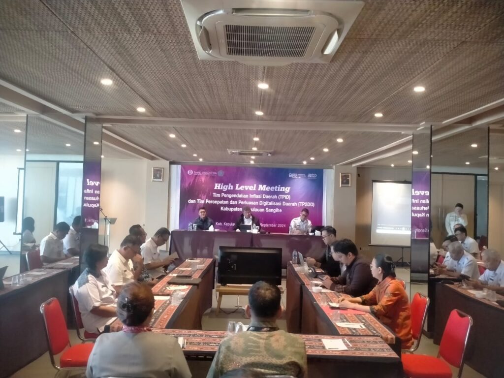 Manadoline.com, Sangihe- Penjabat Bupati Kabupaten Kepulauan Sangihe, Albert Huppy Wounde, SH, MH, menghadiri High Level Meeting Tim Pengendalian Inflasi Daerah dan Tim Percepatan dan Perluasan Digitalisasi Daerah pada Rabu (18/9/2024), dilaksanakan di Tahuna Beach Hotel and Resort dan dihadiri oleh berbagai pemangku kepentingan, termasuk perwakilan dari Bank Indonesia Provinsi Sulawesi Utara.