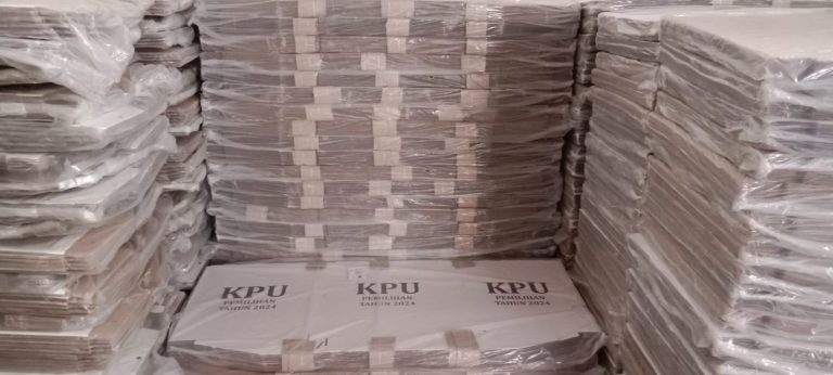 “Kami telah menerima 1.224 bilik suara dan 645 kotak suara. Namun, ada 6 kotak yang rusak sehingga total yang utuh menjadi 639. Selain itu, kami juga menerima 612 botol tinta, tapi ada 4 yang rusak, sehingga yang siap digunakan berjumlah 608,” jelas Tahendung.