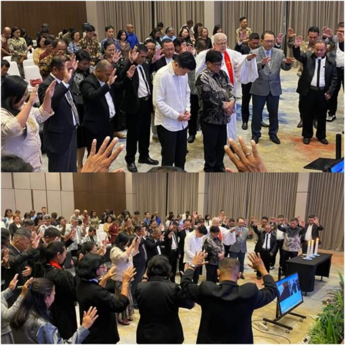 Dukungan itu terungkap dalam doa pengutusan dari seluruh pendeta dan para pengurus sinode GMPU Manado periode 2024-2029 dipimpin langsung Ketua Sinode GMPU, Pdt. Alfentus Sahabang, M.Th di ibadah Minggu (23/10/2024) sore.