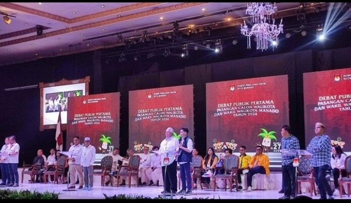 MANADO – Debat Publik Pertama calon walikota dan wakil walikota Manado, Jumat (17/10/2024) di Manado Convention Center (MCC) berlangsung sukses.