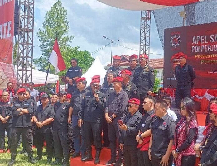MANADO-PDI Perjuangan Sulawesi Utara, Jumat (16/11/2924) melaksanakan apel siaga satgas cakrabuana di lapangan Sparta Tikala, Manado.