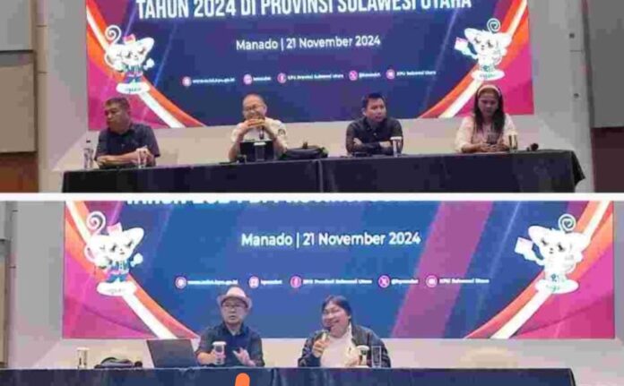 MANADO-Komisi Pemilihan Umum Sulut bersama Forum Wartawan DPRD (FORWARD) melaksanakan Sosialisasi Pendistribusian Logistik Pilkada Serentak tahun 2024 di Provinsi Sulawesi Utara di Hotel Four Point Manado, Kamis (21/11/2024).