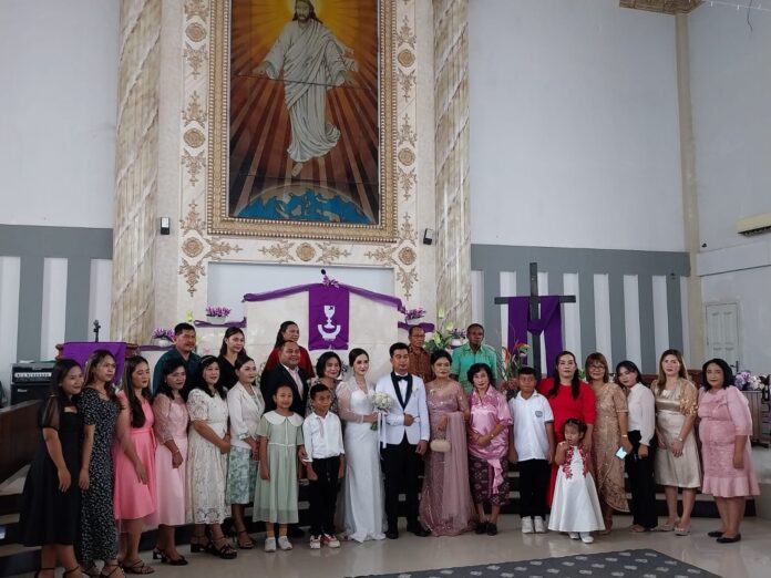 Ibadah peneguhan nikah berlangsung khidmat, dihadiri oleh keluarga kedua mempelai, yakni keluarga Kaharingan-Papehe dan keluarga Makasenda-Makinggung.