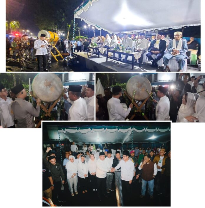 Menambah semarak, Walikota didampingi Wakil Walikota, bersama Forkopimda Kota Bitung memukul beduk secara bergantian dengan diiringi gema takbir sekaligus dilanjutkan dengan melepas peserta pawai takbiran tepat didepan Kantor Walikota, Minggu (30/3/2025).