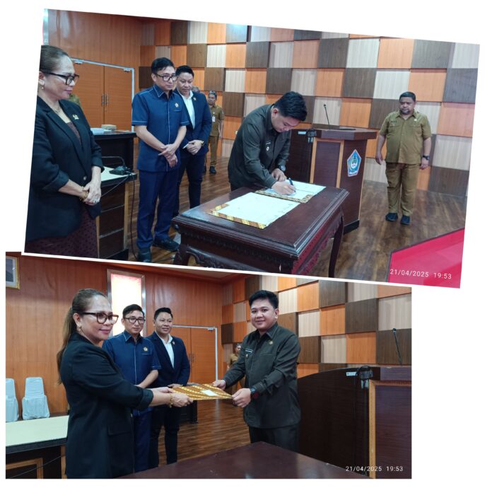 BITUNG— Dewan Perwakilan Rakyat Daerah (DPRD) Kota Bitung mengelar rapat paripurna penandatanganan nota kesepakatan Rancangan Awal Rencana Pembangunan Jangka Menengah Daerah (RPJMD) Kota Bitung Tahun 2025-2029, pada Hari Senin (21/4/2025).