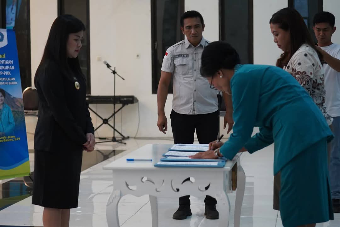 Bupati Kepulauan Sitaro, Chyntia Kalangit yang didampingi Wakil Bupati, Heronimus Makainas dan Sekretaris Daerah, Denny Kondoj telah sah mengukuhkan sekaligus menyaksikan serah terima Ketua TP-PKK yang lama dan baru.