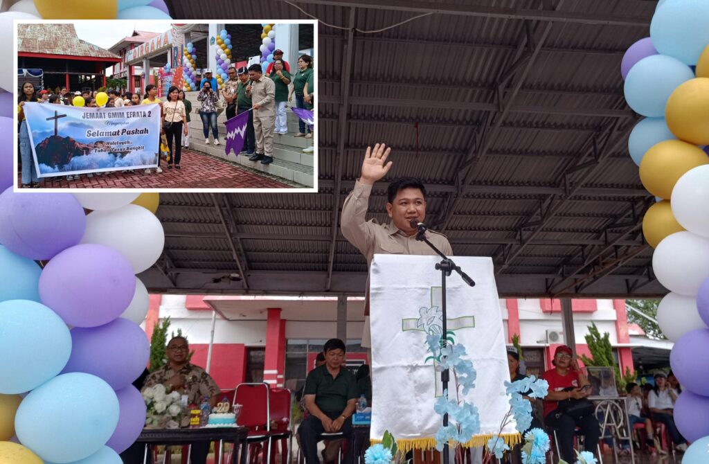BITUNG —Dalam suasana Sukacita dan Damai Sejahtera, Wakil Wali Kota Bitung Randito Maringka, mengikuti Ibadah yang dirangkaikan dengan Selebrasi Paskah Tahun 2025 oleh Jemaat GMIM Wilayah Bitung satu, yang dilaksanakan pada hari Jumat (25/4/2025) bertempat di lapangan Kantor Walikota Bitung.