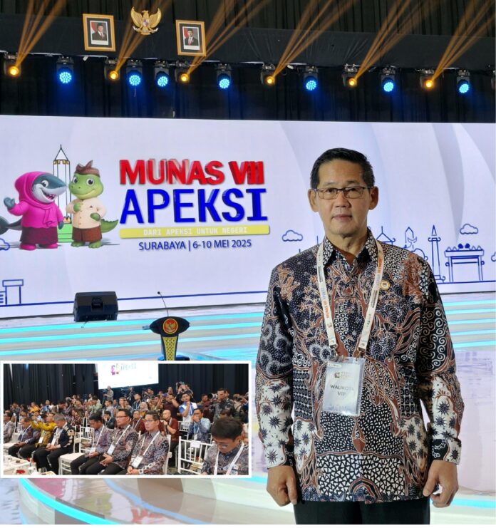 Wali Kota Bitung, Hengky Honandar turut ambil bagian dalam Musyawarah Nasional (Munas) VII Asosiasi Pemerintah Kota Seluruh Indonesia (APEKSI) yang digelar di Hotel Grand City Kota Surabaya, Kamis (8/5/2025).