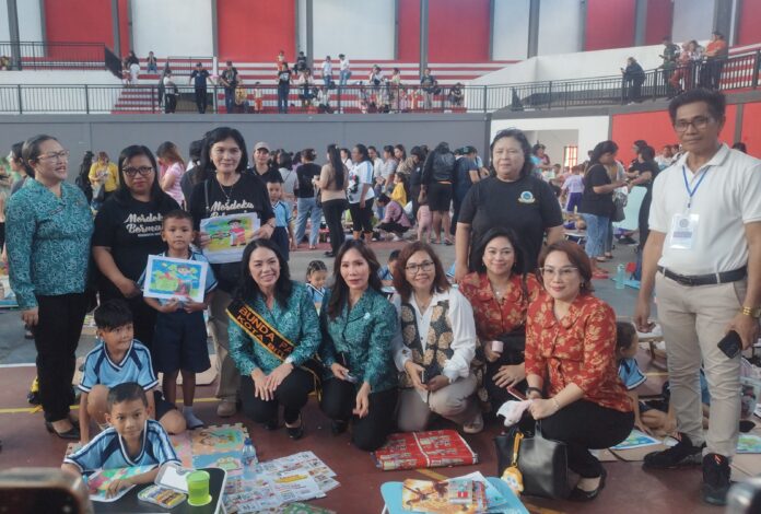 BITUNG —Bunda PAUD Kota Bitung, Ny. Ellen Honandar Sondakh, bersama Ketua Dharma Wanita Persatuan (DWP) Kota Bitung, Ny. Nurjaya Theno Moenarwin, menghadiri secara langsung dan menyaksikan lomba mewarnai gambar, gerak dan lagu dalam rangka Hari Ulang Tahun (HUT) ke 75 IGTKI – PGRI.