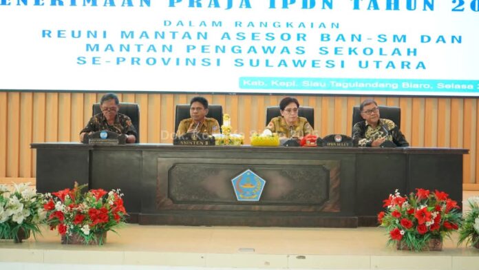 SITARO – Asisten Perekonomian dan Pembangunan Sekda Kabupaten Kepulauan Sitaro, Eddy Salindeho mewakili Pimpinan Daerah menghadiri kegiatan sosialisasi forum Badan Akreditasi Nasional-Sekolah/Madrasah (BAN-S/M) sekaligus sosialisasi Penerimaan Praja Institut Pemerintah Dalam Negeri (IPDN) tahun 2025 yang digelar di Auditorium Kantor Bupati Sitaro, Selasa (27/05/2025).
