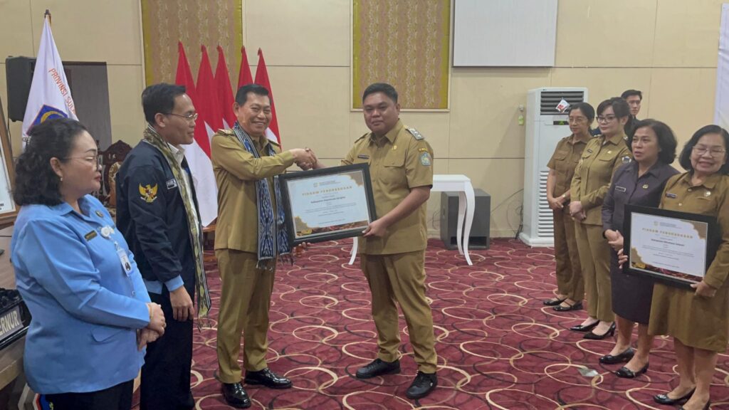 Penghargaan tersebut diterima Wakil Bupati Kepulauan Sangihe, Tendris Bulahari, saat menghadiri Workshop Penyusunan dan Evaluasi Peta Jalan (Road Map) serta Pemetaan dan Proyeksi Kependudukan Tingkat Provinsi Sulawesi Utara, yang digelar di Ruang CJ Rantung, Kantor Gubernur Sulut, Selasa (3/6/2025).
