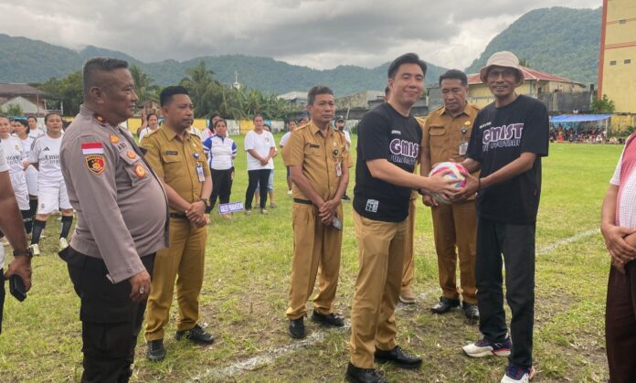 Dalam kesempatan itu, ia menyerahkan bola pertama kepada Ketua Bidang Wirausaha Sinode GMIST, Pdt. Efraim Diamanis, sebagai simbol dimulainya pertandingan.