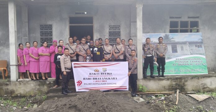 Manadoline.com, Sangihe- Dalam rangka memperingati HUT Bhayangkara Ke-79 Tahun, Kapolres Sangihe AKBP Abdul Kholik bersama jajaran mengunjungi Pondok Tahfidz Al-Quran Al-Ikhlas, di Kelurahan Tidore. Serta memberikann bantuan berupa matetial bantuan ke pengurus pondok.