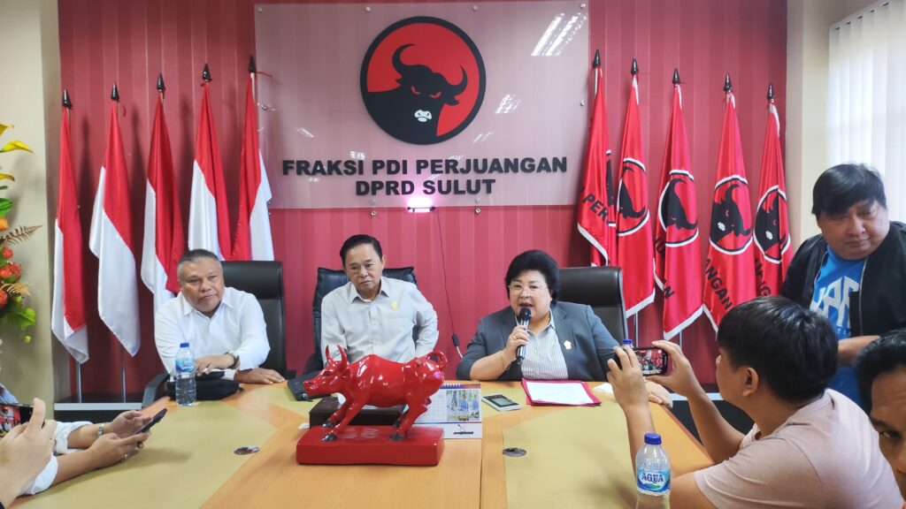 Berty Kapojos sebagai Wakil Ketua Fraksi PDI Perjuangan membacakan langsung sikap fraksi yaitu Fraksi PDI Perjuangan DPRD Provinsi Sulawesi Utara, menyampaikan sikap atas wacana perubahan nama Rumah Sakit ODSK (Optimalisasi Daerah Sehatkan