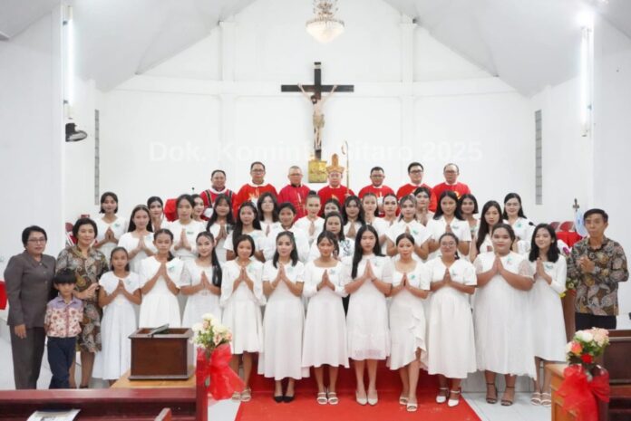 Sebanyak 63 umat menerima Sakramen Krisma yang berlangsung di Gereja Katolik Santa Maria Ulu-Siau, Jumat (11/07/2025).