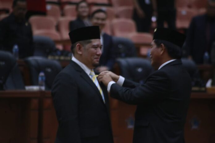 Nampak telihat usai pengambilan sumpah dan janji, Ketua DPRD selanjutnya menyematkan PIN Emas.