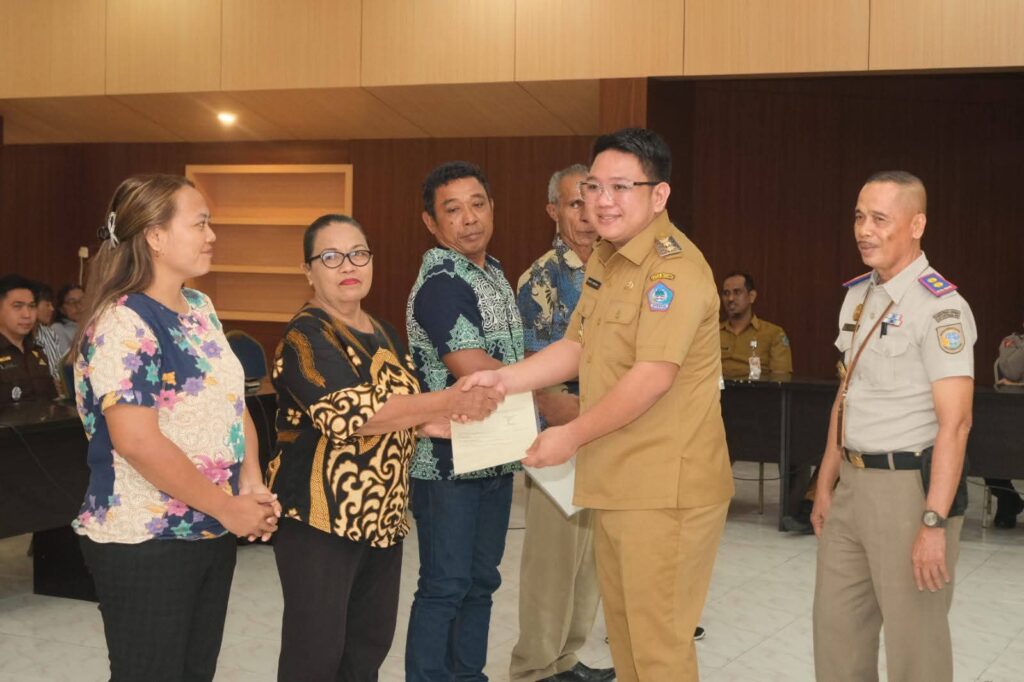 Kegiatan ini berlangsung di Ruang S.H. Sarundajang, Kantor Walikota Bitung, dan dipimpin langsung oleh Wakil Wali Kota Randito Maringka, yang turut dihadiri oleh Kepala Kantor Pertanahan Kota Bitung, Dr. H. Jamaluddin, S.H., M.H., bersama jajaran Gugus Tugas Reforma Agraria (GTRA), para camat, lurah, serta warga penerima sertipikat. Selasa (29/7/2025).