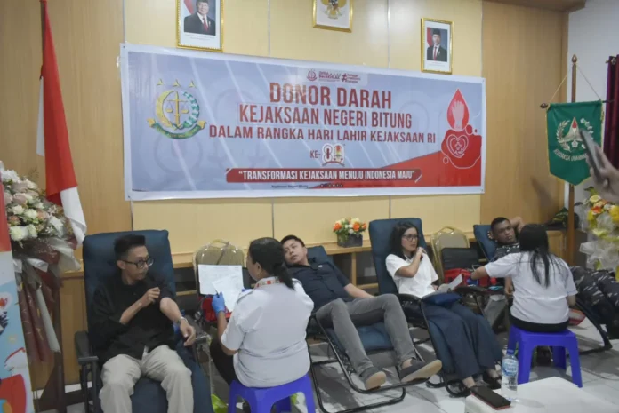BITUNG— Dalam rangka memperingati Hari Lahir Kejaksaan Republik Indonesia ke-80, Kejaksaan Negeri (Kejari) Bitung bersama Ikatan Adhyaksa Dharmakarini (IAD) Daerah Bitung menggelar kegiatan donor darah, bertempat di Aula kantor Kejari Bitung.