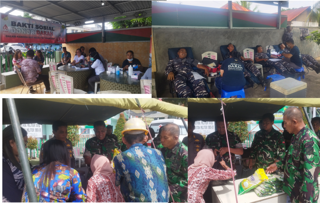 Tidak hanya itu saja, pada kegiatan ini juga pihak TNI menggelar aksi donor darah bekerja sama dengan PMI Kota Bitung, yang diikuti oleh prajurit Kodim 1310/Bitung, Yonmarhanlan VIII Bitung, Satrol VIII Bitung serta personil Polres Bitung.