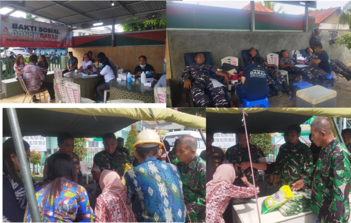 Untuk pelaksanaan bhakti sosial donor darah pihaknya bekerja sama dengan PMI Kota Bitung, yang diikuti oleh 80 orang pendonor dari personil TNI dan Polri.” Lanjutnya.