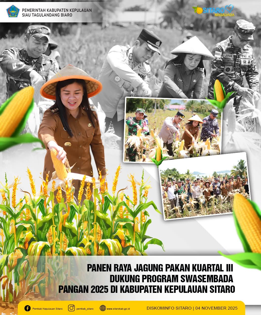 BerandaSitaroPemkab Sitaro Bersama TNI/Polri Panen Raya dan Wujudkan Swasembada Pangan
