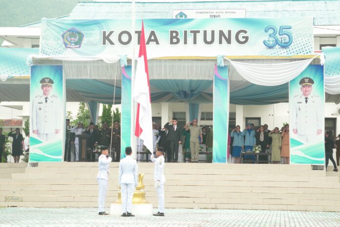 BITUNG— Dalam rangka memperingati Hari Pahlawan Nasional ke-80, Pemerintah Kota Bitung menggelar rangkaian kegiatan yang berlangsung khidmat dan penuh makna, pada hari Senin (10/11/2025). Peringatan dimulai dengan upacara, dan kemudian dilanjutkan dengan Ziarah ke Taman Makam Pahlawan (TMP) Kadoodan, selanjutnya ditutup dengan ritual tabur bunga di laut.
