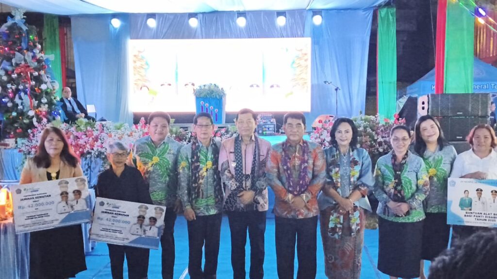 BITUNG— Gubernur Sulawesi Utara (Sulut), Mayjen TNI (Purn.) Yulius Selvanus, S.E., M.Si., didampingi istri tercinta Anik Yulius Selvanus Serta wakil Gubernur Dr. J. Victor Mailangkay, S.H., M.H., menghadiri ibadah Natal Pemerintah Kota Bitung, yang berlangsung di kompleks Bitung Creative Center (BCC), Pasar cita Bitung. Senin (15/12/2025).