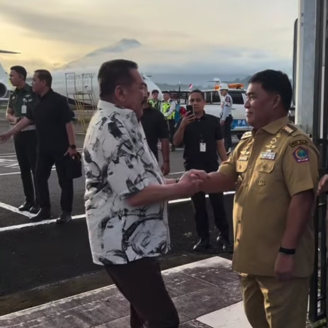MANADO— Jaksa Agung Republik Indonesia, St. Burhanuddin, tiba di Provinsi Sulawesi Utara dalam rangka kunjungan kerja, Senin (23/2/2026). Kedatangannya di Bandara Internasional Sam Ratulangi Manado disambut langsung oleh Gubernur Sulawesi Utara, Yulius Selvanus Komaling (YSK,) bersama jajaran Forum Koordinasi Pimpinan Daerah (Forkopimda) Sulut.