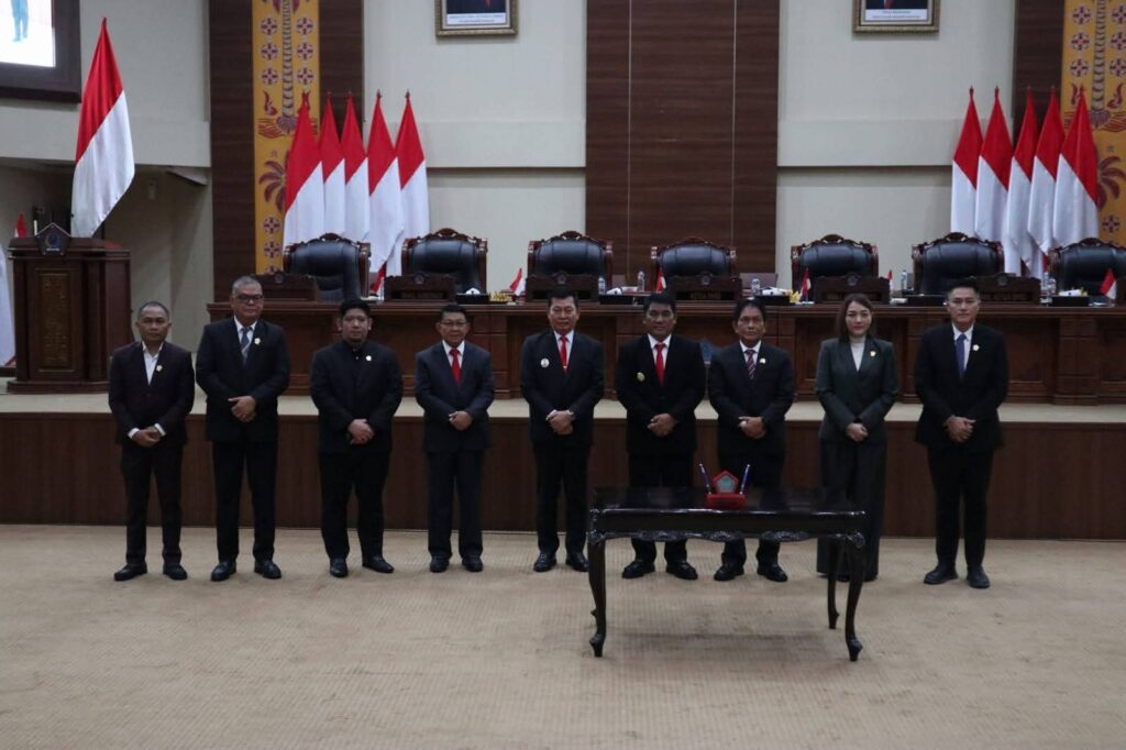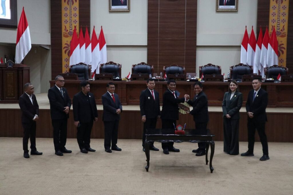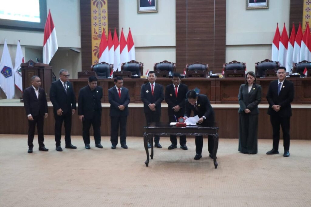 Ketua DPRD Sulut Fransiscus A Silangen saat menandatangani dokumen /rekomendasi LKPJ Gubernur 2025.