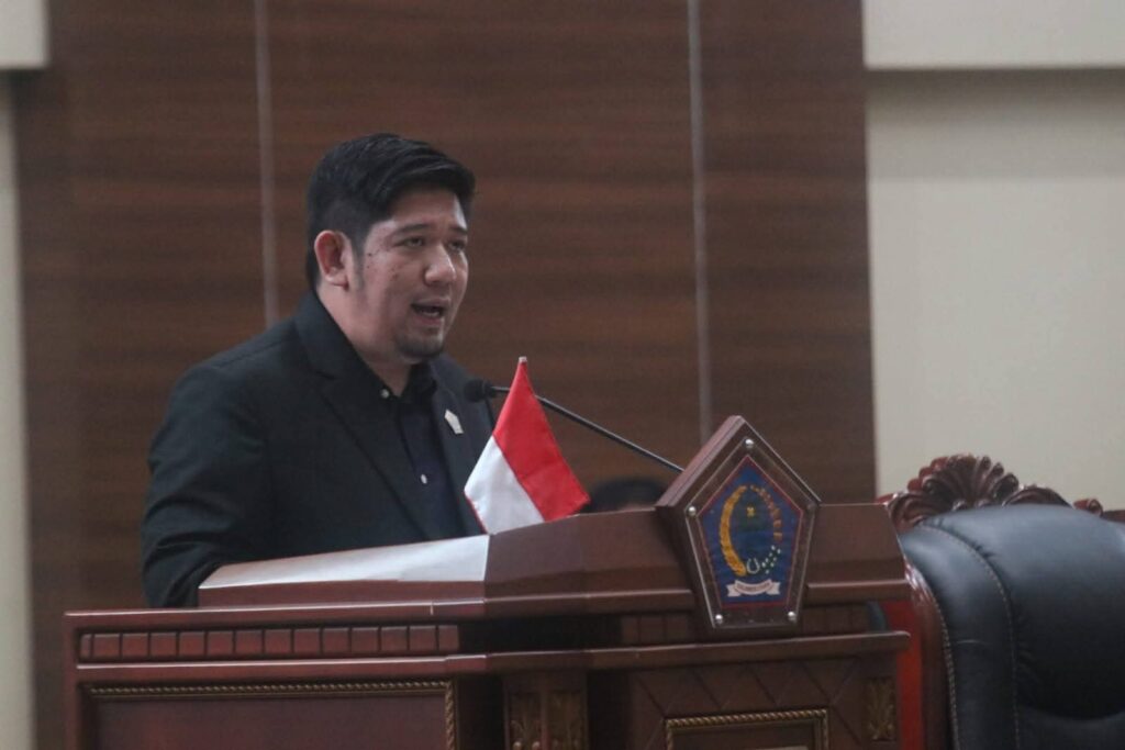 Ketua Pansus LKPJ Raski Mokodompit saat menyampaikan hasil rekomendasi LKPJ Gubernur Tahun 2025.